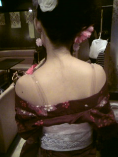さっき、髪のセット終わって、今はみんなで着付けの順番待ちヽ(・∀・)ノ