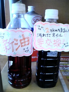写真ではわかりにくいけど、新油と汚れたオイルの例。↓↓↓