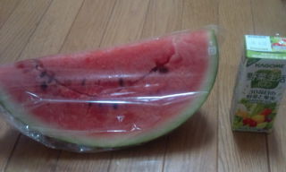友達が、スイカと野菜ジュースを持ってきてくれた☆